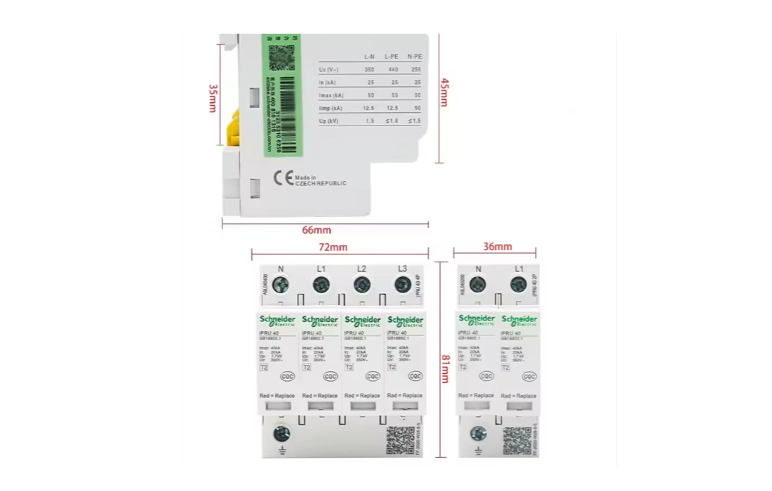 Schneider Electric T2 Level Surge Protector SPD IPRU 40 4P 20KA/40KA/65KA/100KA/IPR65KA AC350V 20KA 2P